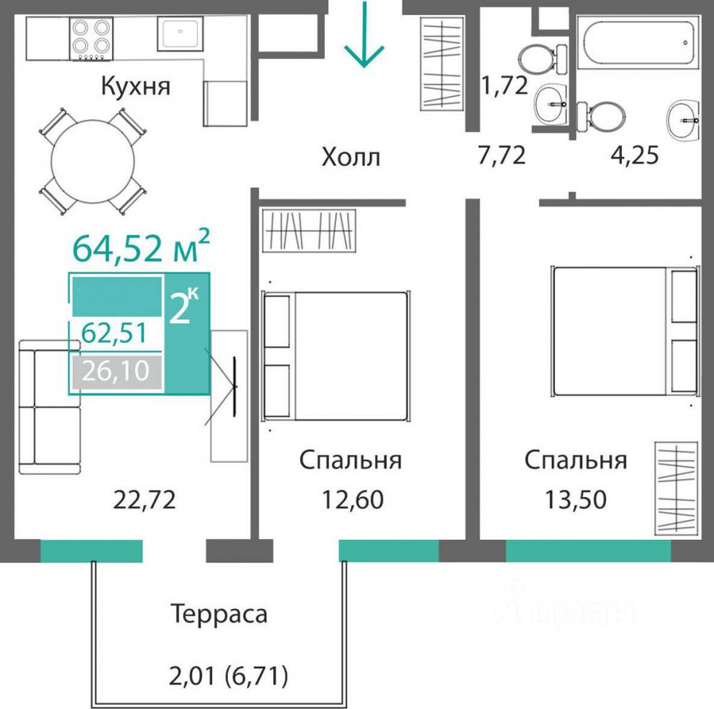 64 м² · Этаж 4 из 9