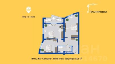Продаются трехкомнатные апартаменты с продуманной планировкой и видом на море на 16-м этаже одного из лучших комплексов Ялты - ''Соляриса'' с собственным бассейном. Основным преимуществом этих апартаментов является расположение, позволяющее комфортно проживать в центре города в современном жилом комплексе со своей большой изолированной территорией и бассейном, а также бесплатной парковкой на неограниченное количество машин.Площадь апартаментов 92,6 м² Состояние - под отделку. По документам статус - апартаменты.ЖК расположен в центральной части Ялты в двух минутах ходьбы от исторического центра. Собственная огороженная территория комплекса занимает внушительные 1,3 гектара земли. Инфраструктура включает: -Собственный открытый летний бассейн 25 м²,-Вместительный паркинг,-Рекреационные территории с детскими площадками, скамейками и местами для прогулок.На территории произрастает порядка ста различных благородных видов растений, поэтому вы будете наслаждаться своей закрытой территорией - летом в тени благородных крымских сосен, а зимой наблюдать из окон ваших апартаментов яркие краски вечнозеленых деревьев.В дом заведены все необходимые коммуникации, своя газовая котельная обеспечивает горячей водой и отоплением. Плата за УК составляет 80 ? за м².До пляжа - 20 минут пешком, по центральной пешеходной Пушкинской аллее. Апартаменты подходят как для временного, так и для постоянного проживания. В непосредственной близости вся инфраструктура города: -Пешеходная Пушкинская улица с множеством кофеен и ресторанов,-Современный Пушкинский рынок,-Большой продуктовый супермаркет,-Банный комплекс,-Пионерский парк,-Аптеки и многое другое.Добавьте объявление в избранное, чтобы не потерять и следить за обновлением цены. Звоните! Мы всегда на связи.