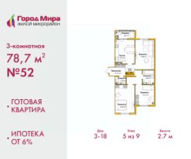 Готовые квартиры. Ипотека от 6%. Звоните, мы вам все подробно расскажем! Трехкомнатная квартира с предчистовой отделкой в ЖМ ''Город Мира'' на 5 этаже. Общая площадь: 78.7 кв.м., жилая: 29.89 кв.м., площадь просторной кухни-столовой: 13.7 кв.м. Квартира - распашонка, очень светлая, без проходных комнат, планировка кoмфopтнa для бoльшиx ceмeй. В квартире один балкон, один совмещенный и один раздельный санузел. Высота потолков 2.7 м. Жилой комплекс ''Город Мира'' комфорт и гармония в современном формате. ''Город Мира'' это масштабный жилой комплекс, созданный для тех, кто ценит комфорт, безопасность и гармонию с природой. Здесь продумана каждая деталь от удобной инфраструктуры до эргономичных планировок квартир. В 2024 году микрорайон ''Город Мира'' победил в номинации ''Лучший экологический проект года в сфере строительства'' по версии премии Crimea Urban Awards. Ключевые преимущества комплекса:- удачное расположение зеленый район с благоприятным микроклиматом- продуманное зонирование жилые кварталы, зоны отдыха и коммерческие объекты- комфорт-класс высокое качество строительства и современные инженерные решения Инфраструктура ''Города Мира'': Образование и досуг:- 2 детских сада (по 260 мест каждый)- планируется строительство общеобразовательной школы- детские и спортивные площадки в каждом дворе- беседки для отдыха, зоны для выгула собак Ритейл и сервис:- магазины, аптеки, медицинские центры- фитнес-клубы, салоны красоты- детские развивающие центры Парковки:- гостевые парковки- наземные и подземные паркинги Квартиры с продуманным комфортом:- просторные планировки с кладовыми и колясочными- лоджии с остеклением- автономное отопление (по 23 дому: индивидуальное отопление)- выполнена стяжка пола (по 3, 4, 20, 21, 22 домам: выполненная стяжка пола и штукатурка стен) - Консьерж-сервис для дополнительного удобства Благоустройство территории:- ландшафтный дизайн с зонами отдыха- современные детские площадки- стильные холлы с дизайнерской отделкой- система видеонаблюдения для безопасности ''Город Мира'' это место, где созданы все условия для комфортной жизни. Выбирайте качество и продуманность в каждой детали! Квартира находится в корпусе 3_18. Дом монолитный, одноподъездный, высотой 9 этажей. В подъезде 1 грузовой лифт. Строительство завершено, дом сдан в 4 квартале 2024 года. Оформление сделки по договору купли-продажи. #2MZU2b