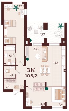 Продаётся 3-комнатная квартира в строящемся доме (Корпус 3), срок сдачи: III-кв. 2028, общей площадью 108.6 кв.м., на 8 этаже. Премиальный жилой комплекс ''Нега'' возводится в Профессорском уголке неподалёку от набережной, где снимался фильм ''Кавказская пленница''. Комплекс окружён многовековым вечнозеленым хвойным лесом, а горный ландшафт позволяет любоваться панорамными видами из любой точки комплекса. Продуманная внутренняя инфраструктура создаёт комфортные условия для жизни и отдыха. B вашем распоряжении бассейн с морской водой и зона СПА, ресторан и кафе, парк с кипарисами и парящие пешеходные мосты. Жизнь в ''Неге'' будет поистине беззаботной, потому что все бытовые вопросы возьмёт на себя профессиональная управляющая компания.
