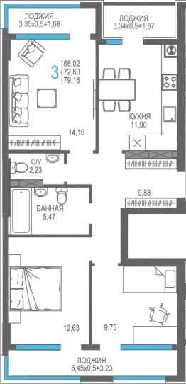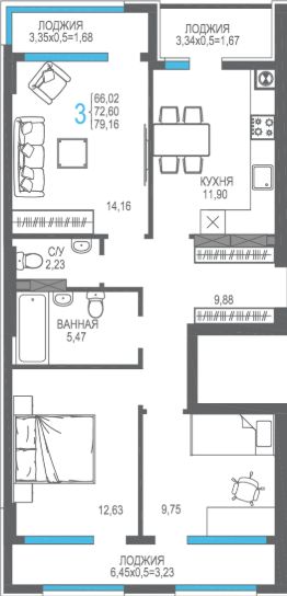 Продаётся 3-комнатная квартира в строящемся доме (Корпус 7), срок сдачи: I-кв. 2026, общей площадью 72.6 кв.м., на 3 этаже. Жилой комплекс ''На Фонтанке'' в городе Алушта на улице Багликова.