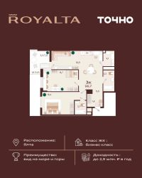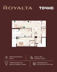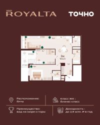 Жилой комплекс ''РОЯЛТА'' включает 5 монолитно-кирпичных девятиэтажных зданий. Проект предлагает квартиры различных планировок: от однокомнатных до трехкомнатных с расширенными балконами и террасами до 13,4 м2. Территория будет благоустроена детскими игровыми и спортивными площадками, гостевой автостоянкой и озеленением, включая газоны, деревья и кустарники. Также появятся современные уличные тренажёры, СПА-комплекс и панорамный инфинити-бассейн. В шаговой доступности находятся центральная набережная Ялты, детские сады, школы, супермаркеты, торговые центры, Ялтинский медицинский колледж, автовокзал и Мордвиновский парк.