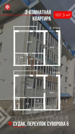 Объект 837. Двухуровневая квартира в новостройке в Судаке 140 000 руб за кв.м! Продается 3-комнатная квартира с отделкой от Застройщика с видом на море и крепость. Выгодное решение для тех, кто ищет квартиру продуманной планировки для жизни и отдыха и не хочет жить в старых ''хрущёвках''! Характеристики:- площадь квартиры 107,3 м2, из них кухня-гостиная - 25,2 м2, спальни - 26 м2, 16,8 м2 и 16,4 м2,- два санузла,- 2 балкона с видом на море,- дом введен в эксплуатацию в 2014 году. Удобное расположение в тихом районе, но:- до автобусной остановки - 100 м,- до центрального рынка и супермаркетов - 700 м,- до школы - 670 м,- до детского сада - 100 м,- до поликлиники - 630 м. Эта квартира в отделке от застройщика станет идеальным решением для тех, кто ищет новое жилье за приемлемую цену и хочет сам создать свой уютный дом. Квартира с продуманной планировкой, красивыми видами из окна, с удобным расположением и точно станет вашим любимым местом для жизни и отдыха! Показ по предварительной договоренности. Не все объекты нашего агентства размещаются в открытой рекламе. Многие предложения доступны только через наших агентов — обращайтесь, и мы предложим лучшие варианты.