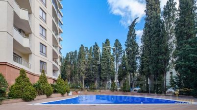 Продажа двухуровневого пентхауса с видами на горы, город, и море расположенного на 17 и 18 этажах престижного комплекса апартаментов ''Солярис'' с собственным парком и бассейном прямо в центре Ялты. Площадь пентхауса 220 м² -внутренняя - 130 м², -террасы - 90 м². Планировка пентхауса предполагает размещение двух спален, две приватных видовых террасы, на одной из которых можно установить персональный бассейн, гостиную и кухню. Состояние - под отделку. По документам статус - апартаменты. На фотографиях желтым пунктиром обозначена граница с соседним пентхаусом. Комплекс апартаментов расположен в центральной части Ялты в двух минутах ходьбы от исторического центра. Собственная огороженная территория комплекса занимает внушительные 1,3 гектара земли. Инфраструктура включает: -Открытый летний бассейн 25 м²,-Вместительный паркинг,-Рекреационные территории с детскими площадками, скамейками и местами для прогулок.На территории произрастает порядка ста различных благородных видов растений, поэтому вы будете наслаждаться своей закрытой территорией - летом в тени благородных крымских сосен, а зимой наблюдать из окон ваших апартаментов яркие краски вечнозеленых деревьев.В дом заведены все необходимые коммуникации, своя газовая котельная обеспечивает горячей водой и отоплением. Плата за УК составляет 80 ? за м².До пляжа - 20 минут пешком, по центральной пешеходной Пушкинской аллее. В непосредственной близости вся инфраструктура города: -Пешеходная Пушкинская улица с множеством кофеен и ресторанов,-Современный Пушкинский рынок,-Большой продуктовый супермаркет,-Пионерский парк,-Аптеки и многое другое.Этот пентхаус поистине уникален, что делает его одним из самых редких форматов жилья на рынке Ялты. Стоимость эквивалентна 550 000$ на дату покупки.Добавьте объявление в избранное, чтобы не потерять и следить за обновлением цены.Звоните! Мы всегда на связи.