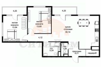 • Наибольшая площадь: 77 м²