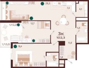 Продаётся 3-комнатная квартира в строящемся доме (Корпус 1), срок сдачи: II-кв. 2027, общей площадью 102.3 кв.м., на 2 этаже. Жилой комплекс бизнес-класса ''РОЯЛТА'' от застройщика ''ГК ТОЧНО'' в городе Ялта Республики Крым на улице Спендиарова.