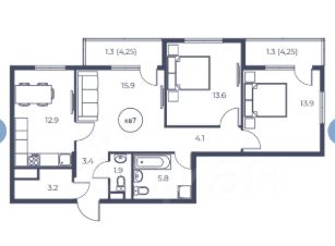 86 м2