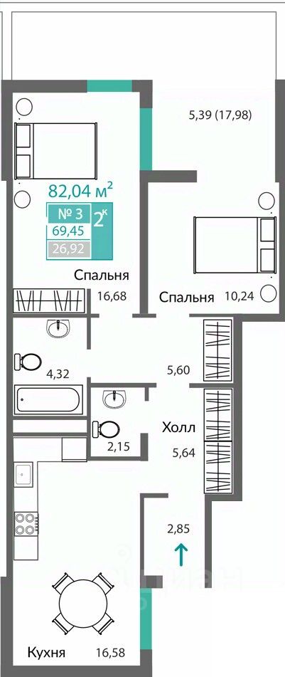 Продаётся 2-комнатная квартира в строящемся доме (9 этап (Секция Б9.2)), срок сдачи: I-кв. 2027, общей площадью 69.45 кв.м., на 1 этаже. ОТКРЫВАЕМ НОВЫЕ ГОРИЗОНТЫ В жизни каждого наступает момент, когда мы понимаем, что выросли. Приходит время твердо идти вперед, расширять границы и открывать новые горизонты. Городской округ ''Горизонты'' - прекрасен для первого собственного жилья, идеален для выхода на новый уровень сбалансированной и легкой жизни. Квартал состоит из нескольких секций разной этажности: 2, 7, 9 и 10 этажей.