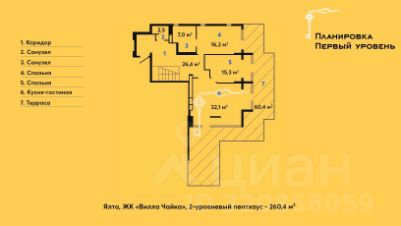Продаётся светлая 4-комнатная квартира с дизайнерской отделкой и мебелью из Италии с панорамным видом на море, горы и город в ЖК ''Вершина успеха'' в 800 метрах от набережной Ялты. Из всех комнат открываются панорамные виды на море, горы и город. Панорамное остекление в пол по всему периметру усиливает ощущение простора и уюта.Квартира площадью 176,7 м² расположена на 11 этаже 14-этажного дома. Статус - квартира с пропиской! Планировка: -просторная кухня-гостиная — 60,5 м²,-мастер-спальня — 18,5 м² с гардеробной и ванной,-две спальни 26,1 м² и 31,2 м², одна из которых с собственной гардеробной,-балкон — 6,2 м²,-прихожая — 10,5 м²,-ванная комната — 9,4 м² и гостевой санузел,-постирочная и кладовая.Квартира готова к проживанию — полностью меблирована и оснащена техникой. В отделке использованы высококачественные материалы: -Стены покрыты декоративной штукатуркой, пол — ламинат премиум-класса, алюминиевые плинтуса,-Вся мебель привезена из Италии, включая кухонные фасады и корпусную мебель,-Установлена сантехника Gappo,-Фасады корпусной мебели выполнены из массива дуба, столешница — из искусственного камня,-Алюминиевые окна ALUSET по всему периметру.Вся кухонная техника от компании Gorenje: -Холодильник side-by-side,-Индукционная плита,-Духовой шкаф,-Микроволновая печь,-Посудомоечная машина 60 см.-Винный шкаф Meyvel.В постирочной: стиральная и сушильная машины Gorenje, бойлер, фильтр для очистки воды. Инженерия: -Отопление — центральное от крышной газовой котельной,-По периметру всей квартиры — водяной тёплый пол,-Установлена сплит-система кондиционирования MVD,-Электрофурнитура — система ''умный дом'' с управлением через Алису.О жилом комплексе: ЖК ''Вершина успеха'' расположен на закрытой охраняемой территории в зелёном и тихом центральном районе Ялты. Имеет хорошие подъездные пути, подземную и наземную гостевую парковку. Дом построен в соответствии с современными технологиями строительства высокого качества: монолитно-кирпичная с повышенной сейсмоустойчивостью.Коммуникации: -Своя автономная газовая котельная,-Два бесшумных лифта,-Круглосуточная охрана,-Видеонаблюдение,-Обслуживается ТСЖ.Вся инфраструктура находится в пешей доступности: школа, детский сад, магазины, остановка, медицинский центр ''Киров'', парк, аптеки, рынок.Дополнительно в продаже: -3 машиноместа в подземном паркинге , каждое по 25 м² , стоимость — 3 млн рублей за место .2 кладовки на 12 этаже , стоимость каждой — 1 млн рублей .До набережной Ялты 10 минут пешком. Добавьте объявление в избранное, чтобы следить за обновлением цены. Звоните! Мы на связи 24/7.