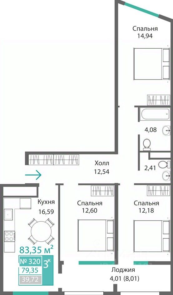 79 м² · Этаж 12 из 16