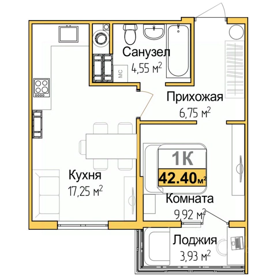 Продаётся 1-комнатная квартира в строящемся доме (Этап 4 (Секции А2, Ж2, Г4, В2, Г3)), срок сдачи: II-кв. 2028, общей площадью 43.16 кв.м., на 1 этаже. Новый жилой комплекс ''Подсолнух'' от застройщика ''Монолит'' расположен по адресу: Республика Крым, г. Симферополь, ул. Святителя Гурия