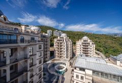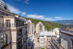 Роскошный 2-уровневый пентхаус без отделки в премиальном комплексе Дипломат, корпус 8. Панорамные виды на море и горы. Большая терраса. Комплекс построен, сдан. Собственность, оформление по ДКП. На территории 3 открытых бассейна, ресторан, собственный СПА-центр с крытым бассейном, сауна, русская баня, хамам, тренажерный зал. До пляжа 500 метров по закрытой охраняемой территории соседнего санатория.