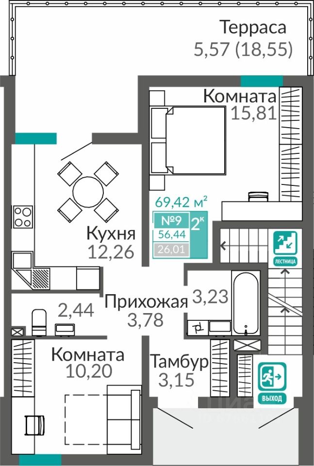 56 м² · Этаж 1 из 9