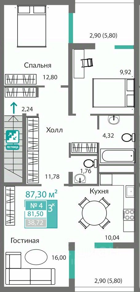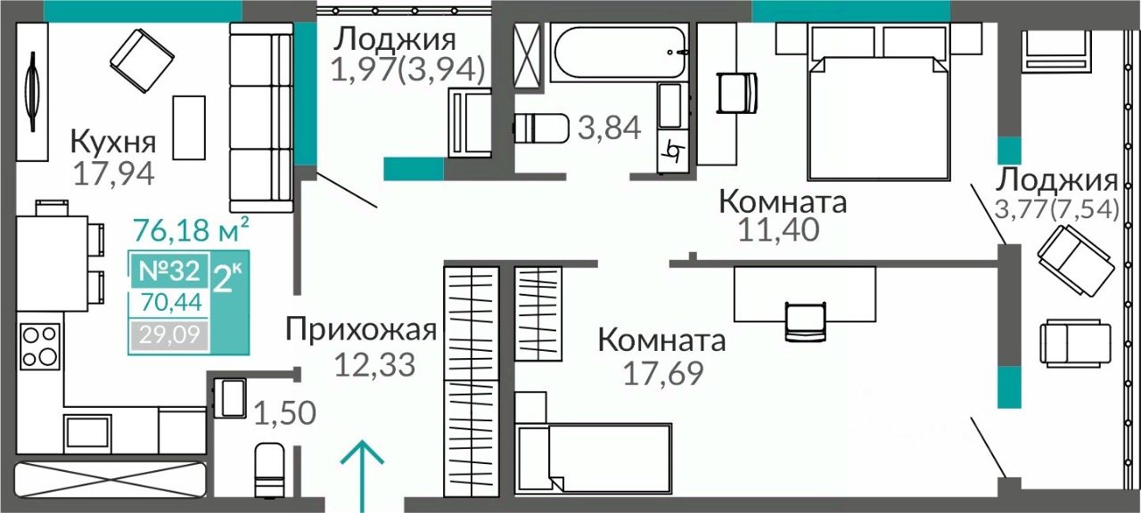 76 м² · Этаж 7 из 9