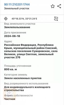 Продается участок 15 соток в живописном селе Великое, всего в 10 км от курортного города Евпатории.Участок ровный, что идеально подходит для строительства вашего дома мечты. Поселок газифицирован, активно застраивается. Категория земель: земли населенных пунктов. Вид разрешённого использования: для индивидуального жилищного строительства (ИЖС). Это идеальное место для строительства вашего загородного дома или коттеджа! Здесь вы найдете все, что необходимо для комфортной жизни: рядом магазины, школа, детский сад, амбулатория. Удобное транспортное сообщение обеспечит вам легкий доступ к городу и другим объектам. Село Великое становится все более привлекательным для жизни и инвестиций благодаря строительству автомобильной магистрали федерального значения Симферополь - Мирный.Все документы в порядке, вы можете быть уверены в безопасности сделки. Звоните прямо сейчас, чтобы узнать больше и записаться на просмотр. МЫ ГАРАНТИРУЕМ ФИНАНСОВУЮ БЕЗОПАСНОСТЬ ДЛЯ НАШИХ КЛИЕНТОВ.Полное юридическое сопровождение сделки.Высокий шанс одобрения ипотеки.Звоните, с удовольствием ответим на ваши вопросы!Код пользователя: 191422Номер в базе: 10660925