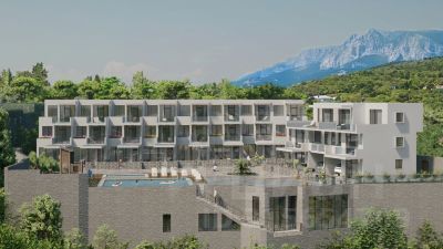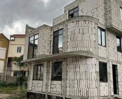 Предлагаем к продаже новый дом в пригороде Ялты. Двухэтажный дом, общей площадью 206 м2, построен на 3 сотках земли. Планировка дома на 1 этаже представляет собой кухню-гостиную, спальню, санузел. На втором этаже по плану две спальни, ванная комната, гардеробная. В площадь дома включена эксплуатируемая кровля, площадью 90 м2. Для выхода на кровлю используется лестница со второго этажа. Дом под отделку. Выполнен ремонт фасада дома. В дом заведены: вода, электричество, канализация (септик), газ (подведен к дому). Из дома открывается вид на море и горы.