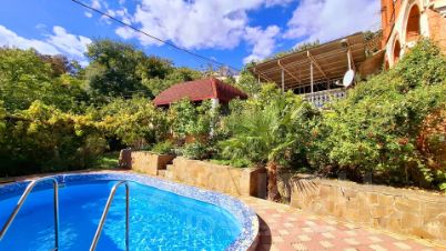 Белоснежная вилла на просторном земельном участке 20 соток с плодоносящим фруктовым садом в субтропическом курортном поселке Кореиз.Домовладение включает в себя: трёхэтажный жилой дом площадью 294 кв.м., двухэтажный дом для гостей площадью 75 кв.м., большой гараж для 3-4 авто площадью 110 кв.м.Планировка жилого дома включает себя:Первый этаж: прихожая с гардеробной, гостевая спальня, сан узел, постирочная, котельная в которую имеется отдельный вход, также на первом этаже расположена бильярдная, и кладовая.Второй этаж: просторная гостиная с действующим камином и выходом на балкон, спальня с балконом и сан узел.Третий этаж: гардеробная, сан узел, три спальни с выходом на балконы.Над домом эксплуатируемая кровля с панорамными видами на море, побережье, горные вершины Ай-Петри.В гостевом доме 2 спальни, сан узел и кухня.Земельный участок 20 соток с теневыми местами для отдыха, летней кухней, доменным мангалом, плавательный бассейн, беседка, ландшафтное озеленение и полноценный фруктовый сад.В пошаговой доступности: магазины, поликлиника, СПА комплекс Респект Холл, до Ялты всего 15 минут на авто.