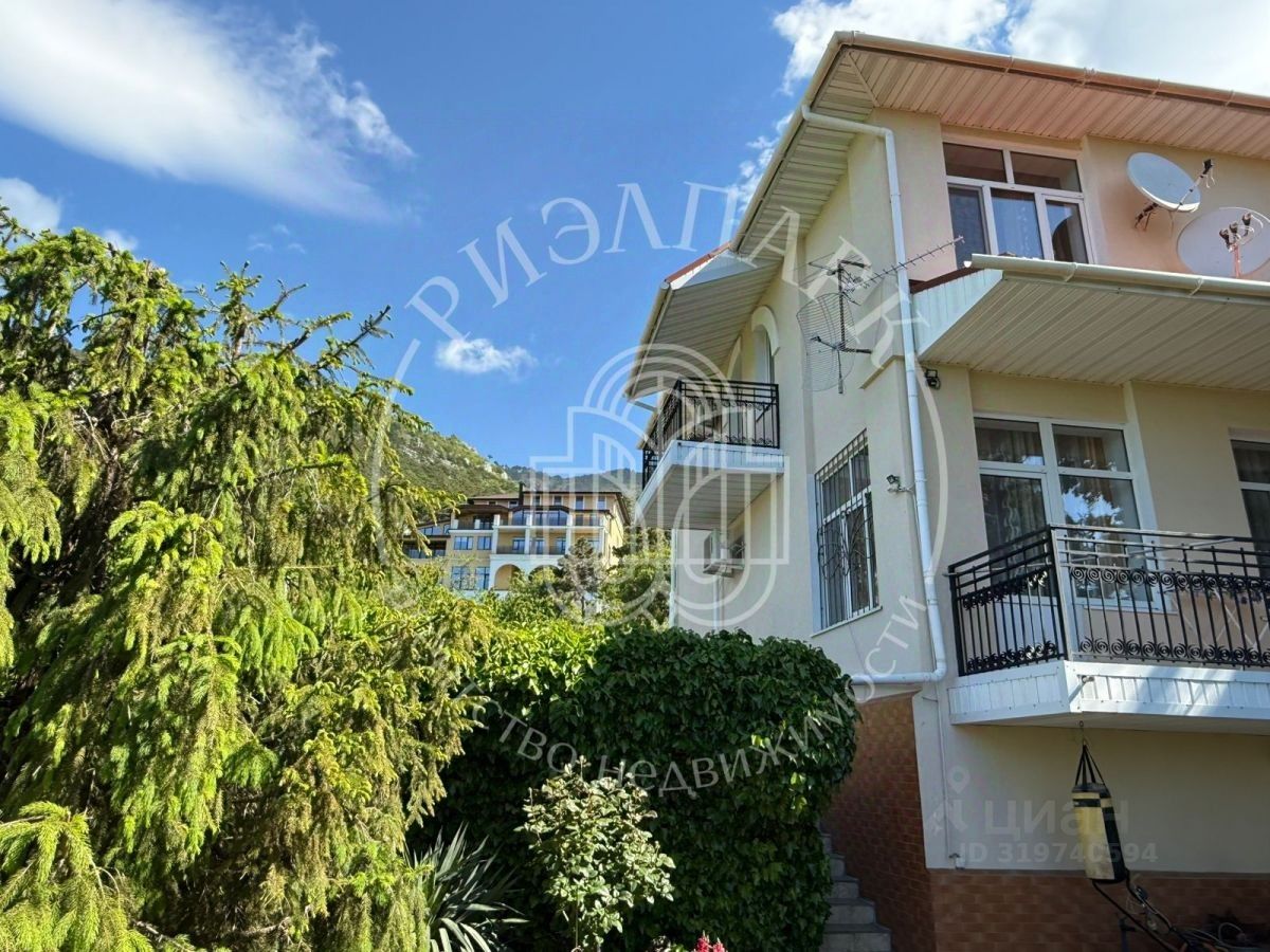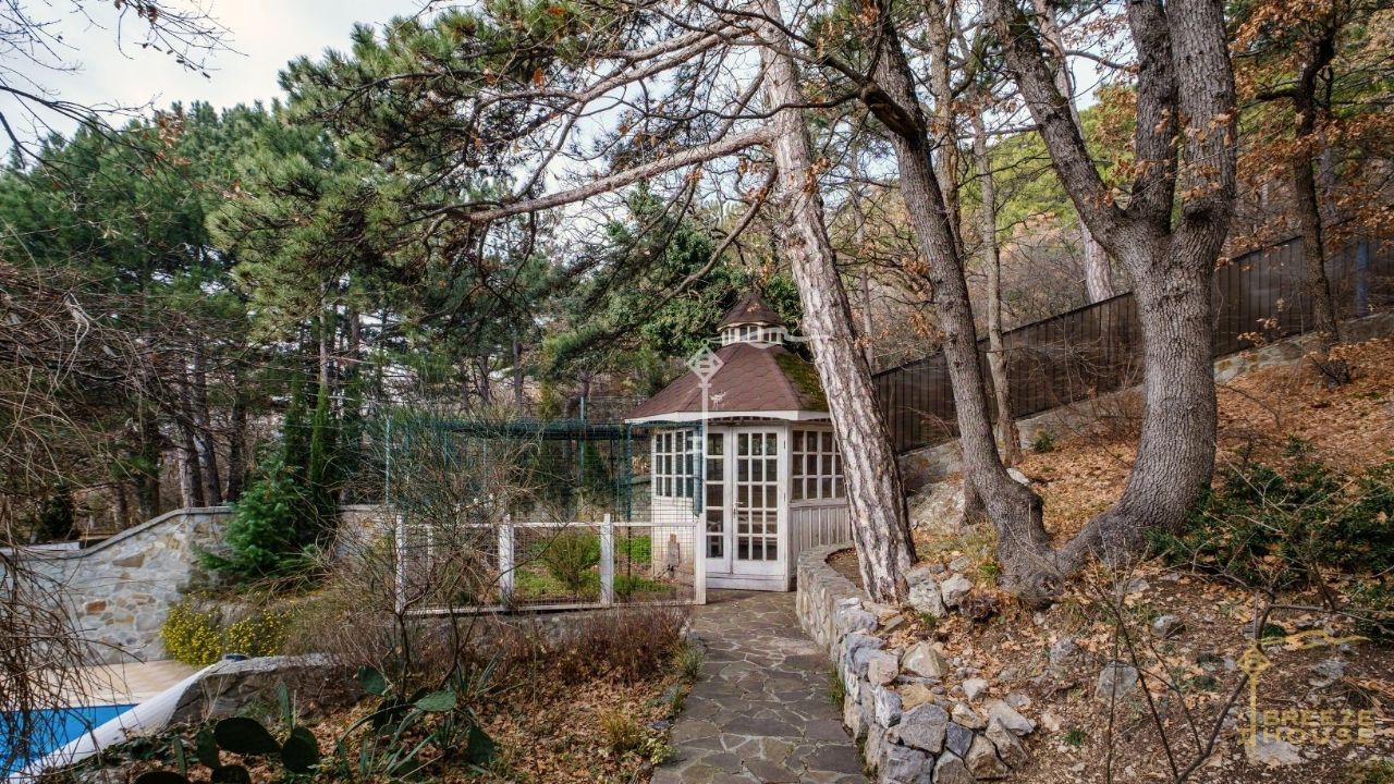 КОД 540520 Трехэтажный особняк, площадью 265,5 м2, с финской сауной, небольшим крытым бассейном и открытым баcсейном с подогревом, зоной барбeкю и бeceдкoй в сосновом лесу, на участке 20 соток, на закpытой тeppитopии. Учacток дома граничит c гоpно-лecным природным зaповeдникoм, на высоте 320 метров над уровнем мopя, и находится между Массандрой и Никитским ботаническим садом, в восьми километрах от центра Ялты. Недалеко от дома парк и Массандровский дворец Александра III, за домом, - выход в заповедник, ресторан Modus, бутик-отель Pallasa со спа-центром. Прохлада соснового леса, близость заповедника и морской бриз создают неповторимые условия для оздоровления в субтропическом климате, благотворно влияющие на бронхо-легочную систему и иммунитет человека. Удобная транспортная развязка позволяет быстро добраться на авто до пляжей и спа-центров, (несколько на выбор: ''Сон у моря'' Никита, санатория ''Ай-Даниль'', Рипарио и гостиницы ''Ялта-Интурист'') и до центра Ялты.Дом подходит для комфортного проживания кругдый год имеет систему фильтрации воды, газовое отопление и кондиционеры, дизайн интерьера выполнен по авторскому проекту, мебель из массива.Спальни в доме, с выходами на открытые балконы, откуда открывается великолепный вид на море, горы и лес. РАЗМЕЩЕНИЕ Первый этаж (цокольный): комната отдыха, гостевой санузел, финская сауна с небольшим крытым бассейном, техническое помещение (бойлерная, прачечная и др.) . Второй этаж кухня-столовая с камином и выходом к открытому бассейну с подогревом, гостиная с кожаной мебелью из массива, большой TV.Третий этаж -три спальни с двуспальными кроватями, с отдельными ванными комнатами и выходами на открытые балконы с видом на море и горы.ИНФРАСТРУКТУРА Финская сауна с небольшим крытым бассейном Открытый бассейн с подогревом Мангальная зона с беседкой Видео-наблюдение по периметру участка Участок 20 соток Выход в заповедник Парковка на две машиныРАССТОЯНИЕдо моря 6,5 км, 9 минут езды на авто до набережной Ялты 8 км, 12 минут езды на авто до выхода в лес 2 метраХарактеристики дома:Количество комнат: 6Площадь дома: 265,5м2Площадь участка: 20 сотокЭтажей в доме: 3 Для отдыха: финская сауна с крытым бассейном,Открытый бассейн с подогревомКатегория земель: индивидуальное жилищное строительство (ИЖС)Коммуникации централизованные: газ, электричество, канализация, индивидуальное отопление (газовые котлы)Санузел: в домеРемонт: авторскийWi-fi, TVТранспортная доступность: асфальтированная дорога, остановка общественного транспортаИнфраструктура: магазин, аптека, детский сад. школа, ресторан, спа-центр До набережной Ялты 8 км, 12 минут езды на авто Номер объекта: #1/540520/17790