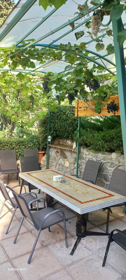 Продажа уютного видового дома с большим участком . Расположен в живописном и тихом месте , в окружении сосен, туй и можжевельника .На участке 50 сотка расположен трехэтажный дом (площадью 121 кв. м.), большой плавательный бассейн с подогревом ( от газа) , летняя кухня с зоной барбекю, летний кинотеатр с проектором, по всей территории установлена акустическая система, беседка для отдыха на свежем воздухе с огромным проектором, две просторные ванные комнаты с душевыми и сан. узлами, парковка на три автомобиля и сторожевой дом для охраны. Так же на территории находятся два летних санузла и душа, беседка с тандырной печью. До моря есть тропинка, которая начинается с калитки двора, и ведёт до самого пляжа. Дом построен из экологически чистых сертифицированных материалов (лиственница). Ремонт выполнен с использованием дорогостоящих качественных материалов под руководством дизайнера. Есть место и проект с разрешением на строительство ещё одного жилого дома 400 м2 . Продажа осуществляется со всей мебелью и техникой. К дому подведены все городские коммуникации. Территория участка и дом находятся под круглосуточным видеонаблюдением, по периметру установлены камеры и датчики движения. Планировка дома : на первом этаже просторная комната с сан. узлом, которую Вы сможете использовать по собственному усмотрению( под винный погреб, спортзал, бильярдная, сауна др.) . На втором этаже просторная гостиная, кухня, сан. узел и балкон с панорамным видом на море. На третьем этаже 2 спальни,сан.узел и балкон так же с прямым видом на море.