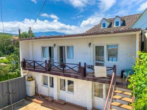 | дом с видом на горы| ДО МОРЯ: 400 мПродается дом в селе Малореченское (Алушта).Площадь дома 108,6 м2. Площадь земельного участка 5,07 сотки.Количество этажей: 2 Гостевой дом на 12 номеров под сдачу и 2-х этажный дом для личного проживания. Чистая ухоженная территория с экзотическими растениями на участке. Локация: до моря 400 м, до Алушты 26 км, до центра поселка 200 м. Коммуникации: все центральные коммуникации.Год завершения строительства: 2005Количество собственников: дваКоличество прописанных: одинДополнительно оплачивается комиссия покупателя в случае подбора объектов недвижимости.Объект 88943