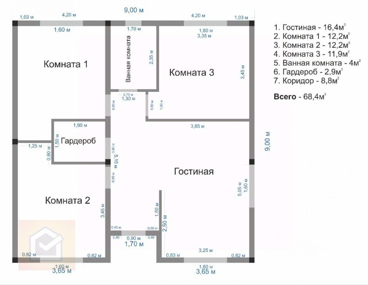 Дом 68 м² · 4 сотки · 1 этаж