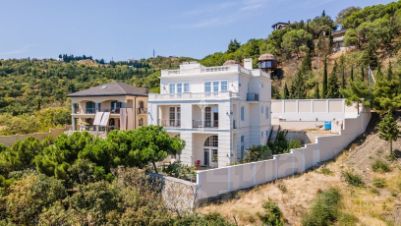 Продам белоснежную жемчужину на берегу моря в субтропическом курортном г.Алушта.Трехэтажная вилла в классическом стиле общей площадью 370 кв.м.В доме всего 6 спален все спальни с персональными сан узлами, две из шести спален это мастер спальни с ванными и гардеробными.На первом этаже: кухня-столовая со вторым светом огромные панорамные окна высота потолков 5 метров из гостиной выход в сад и к зоне барбекю, гостиная, мастер спальня с ванной комнатой, кладовая, также на первом этаже расположена котельная с отдельным входом и гараж на два авто.На втором этаже: каминный зал площадью 100 кв.м., действующий камин зоны отдыха, сан узел, выход на просторную террасу с панорамным видом на море и побережье.На третьем этаже: мастер спальня с гардеробной и ванной, три спальни с душевыми из каждой спальни выход на балкон.У дома эксплуатируемая кровля-солярий с невероятными обжорными видами, есть возможность организации сада на крыше.Земельный участок 9 соток, высажен плодоносящий фруктовый сад.Заведены все городские коммуникации кроме газа, отопление тёплые-водяными полами оформлен льготный тариф на электроэнергию, весь периметр территории просматривается видео камерами, по всему тому разведена и подключена слаботочка: спутниковое и кабельное ТВ, высокоскоростной оптоволоконный интернет на каждом этаже установлен роутер усилитель.К дому удобный асфальтированный подъезд, территория дома огорожена высоким каменным забором.До моря 5-7 минут пешком.