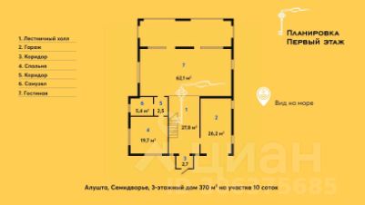 Продажа современного трехэтажного дома на благоустроенном участке 9 соток. Панорамные окна, просторные террасы и эксплуатируемая кровля - все продумано чтобы наслаждаться роскошными видами на море и можжевеловые рощи. Белоснежный дом 376 м² по индивидуальному проекту с потрясающими видовыми характеристиками расположен в экологически чистом и спокойном районе Алушты в поселке Семидворье. Цокольный этаж -единое пространство кухни-столовой с арочным остеклением и выходом на придомовую территорию,-помещение под сауну с душевой и комнатой отдыха,-технические помещения.Первый этаж -большая светлая гостиная с выходом на террасу с видом на море,-гостевая спальня с санузлом,-гараж с автоматическими рольставнями с электроприводом.Второй этаж -две мастер-спальни с санузлами, гардеробными комнатами и выходом на террасу,-две гостевые спальни или детские с балконами, а также можно переделать одну под кабинет,-большая белоснежная терраса с балясинами с невероятным видом на море и природу.Эксплуатируемая кровля с видом на море предлагает множество преимуществ, делая этот дом ещё более привлекательным и функциональным. Это идеальное место для принятия солнечных ванн, обустройства лаунж-зоны с шезлонгами, установки небольшой барной стойки или даже обеденной зоны для ужинов на открытом воздухе.Выполнена базовая нейтральная отделка, которая предоставляет возможность реализовать собственные идеи и концепции в дальнейшем оформлении пространства. Террасированный участок 9 соток огорожен капитальным забором, выполнено ландшафтное озеленение, высажены плодовые деревья, есть место под бассейн и зоны отдыха.Техническое оснащение: -электричество 30 кВт,-по всему периметру теплый водяной пол,-установлен септик,-приточно-вытяжная система вентиляции,-сплит-система кондиционирования,-спутниковое и кабельное телевидение,-высокоскоростной оптоволоконный интернет. На каждом этаже установлен усилитель сигнала Wi-Fi,-система видеонаблюдения по всей территории.Семидворье - посёлок на Южном берегу Крыма среди реликтовых многовековых деревьев: можжевельника, фисташки и дуба у самого синего Чёрного моря. Уединенное и спокойное место позволит отдохнуть от городской суеты и насладиться красивым пейзажем. Поселок расположен к северо-востоку от Алушты. Сочетание хвойного аромата и морского воздуха создают ощутимый оздоровительный эффект.Развитая инфраструктура в пешей доступности: отели, обустроены современные пляжи, бассейны, теннисный корт, летний кинотеатр, кафе, рестораны, детские аттракционы. До моря 3 минуты пешком. Именно ЧИСТЕЙШАЯ МОРСКАЯ ВОДА. РАЙ-для любителей заплывов (нет гидроциклов, яхт, пароходов и т.д.) До центра Алушты 3,2 км или 7 минут на автомобиле. Идеальный вариант на постоянное проживание семьи в живописном месте.Добавьте объявление в избранное, чтобы не потерять и следить за обновлением цены. Звоните! Мы всегда на связи.