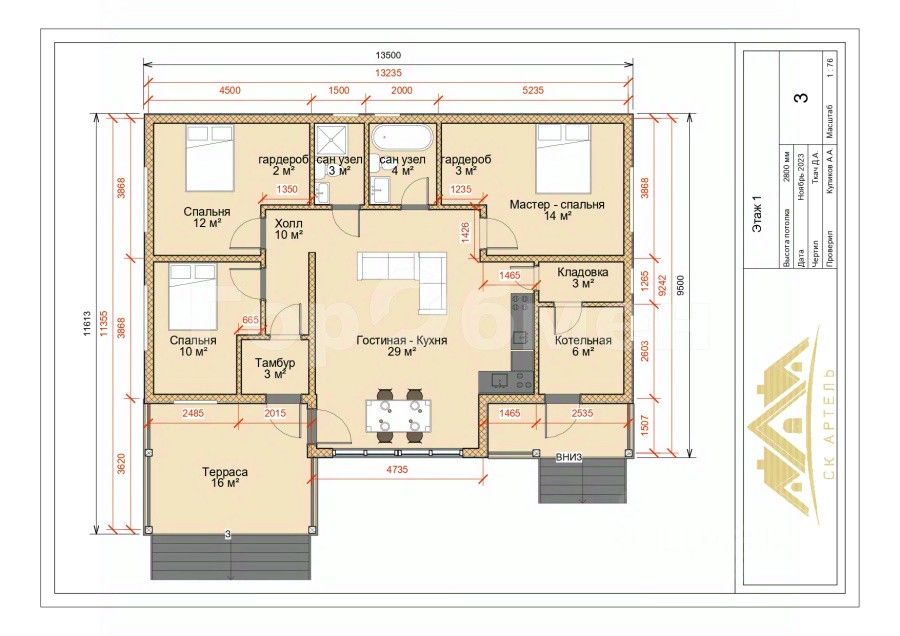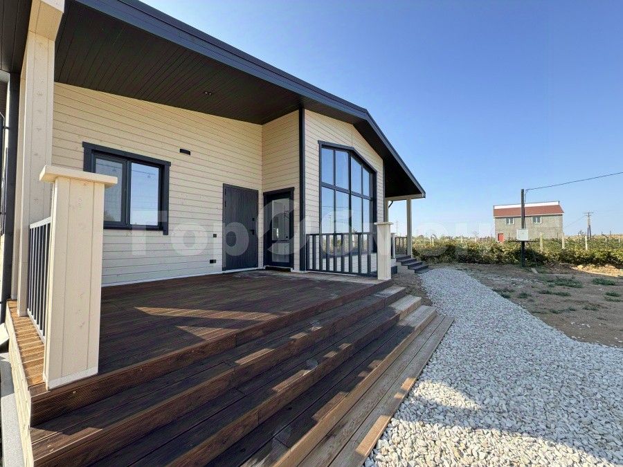 Вашему вниманию предлагается шикарный одноэтажный каркасный дом общей площадью 115 кв.м. и двумя террасами 16 и 3 кв.м. Дом в скандинавском стиле, с панорамным остеклением в гостиной. Выполнен качественный ремонт, на всех стенах обои под покраску, на полу керамогранит и ламинат. Теплый пол везде, где устелен керамогранит. С террасы два входа, основной, который ведет в тамбур и через дверь с остеклением в кухню-гостиную. Тамбур 3кв. метра из него переходим в холл, с которого попадаем в комнату 10 кв.м, затем переходим в детскую 12 кв. м+ 2 метра гардеробная. Огромная кухня-гостиная общей площадью 30 кв.м с невероятным окном, с гостиной мы имеем доступ к санузлам, первый санузел с душевой и туалетом, второй с ванной. Входим в хозяйскую спальню, с 14 кв. м + 3 мера для гардероба. За кухней у нас располагается вместительная кладовая 3 кв.м, для хранения вещей, через которую мы попадаем в сердце дома, котельную площадью 6 кв.м. Дом можно приобрести в ипотеку (семейную, сельскую, военную, стандартную) и конечно же наличные. По всем интересующим вопросам, звоните, расскажу и запишу на показ.