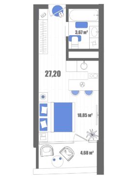 Продаётся студия-апартаменты в строящемся доме (Блок 2), срок сдачи: III-кв. 2027, общей площадью 27.2 кв.м., на 18 этаже. Moinaco Riviera'' - мультиформатный комплекс с круглогодичной wellness-инфраструктурой, идеально сочетающий в себе комфорт и доходность в шаговой доступности от побережья Чёрного моря. Квартал, где комфорт возведён в правило. Он здесь повсюду: от резиденции deluxe-класса до жилых кварталов с торгово-развлекательным центром. От грязелечебницы и SPA-комплекса, доступных круглый год, до школы XXI века и современного детского садика.