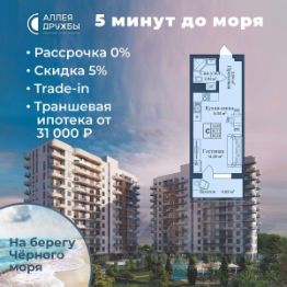 ЗВОНИТЕ ПРЯМО СЕЙЧАС, ЧТОБЫ ПОЛУЧИТЬ ВЫГОДУ ДО 650 000 руб!Скидка 5% при условии 100% оплаты либо ипотека.АКЦИИ:* Ипотека от 14,7%* ТРАНШЕВАЯ ИПОТЕКА - ПВ от 20%, платежи от 31000 в месяц* Рассрочка 0% до 2028г. ПВ от 20%* Бронь на 30 дней* 5 мин до моря пешком, планировки от 30 кв.м.* Высота потолков 3 м , предчистовая и чистовая отделка* Ипотека от СБЕРБАНКА* Доходность инвестиций от 30% годовых. * Сдача в аренду от управляющей компании (доверительное управление) позволяет получать доход от сдачи апартаментов без вашего участия* Безопасная сделка по ФЗ-214/эскроу-счёта''Аллея Дружбы'' — это комплекс апартаментов бизнес-класса в Евпатории, расположенный в 5 минутах прогулки от золотистых пляжей Чёрного моря. Два современных 12-этажных корпуса с панорамными видами на море объединены стильным стилобатом с центральным входом и бутиковыми retail-площадями, а закрытая территория и подземный паркинг обеспечивает приватность и безопасность.АРХИТЕКТУРА И КОНСТРУКТИВНЫЕ ОСОБЕННОСТИ:•12-этажное здание в авторском архитектурном стиле•Высота потолков (от 2,9 м до 3,1 м) •Эксклюзивное решение для первых этажей (высота потолков 3,4м)•Евро планировки с террасами и гардеробными•Панорамное ламинированное остекление •Индивидуальные келлеры•Видовые лоты на море•Высокоскоростные лифты по концепции 5* отеля•Предусмотрено резервное электроснабжение•По проекту предусмотрено место для кондиционера и практическое решение для маскировки коммуникацийЛОКАЦИЯ И ОКРУЖЕНИЕ:•До центра Евпатории - 7 минут на машине •Пляж - всего 5 минут пешком •Рядом с комплексом развитая инфраструктура (рестораны, магазины, кафе, медицинские учреждения, санатории) ГОСТЕПРИИМСТВО И БЕЗУПРЕЧНЫЕ СЕРВИСЫ: •Управляющая компания премиум-класса•Консъерж-сервис 24/7•Доставки продуктов и готовой еды•Зона ресепшн оформлена в стилистике комплекса•Лобби с атмосферным кафе и зонами для чтения•Премиальное решение для мест общего пользования•Интерактивная детская комната для самых маленьких •Пункты выдачи товаров от маркетплейсов•Гостевые парковочные места•Организовано место для хранения колясок ваших малышей•Ремонт на выбор ''Комфорт-формат'' и ''Гранд-формат''БЕЗОПАСНОСТЬ И ТЕХНОЛОГИИ СПОКОЙСТВИЯ:•Закрытая территория, двор без машин•Система контроля доступа (строго по электронным пропускам)•Подземный паркинг с тремя типами машиномест •Выделенные места для велосипедов•Камеры видеонаблюдения •Круглосуточный ресепшн •Телеметрия - автоматический сбор и передача данных с приборов учета апартамента минимизирует ошибки и мошенничество•Система умного апартамента с дистанционным управлением БЛАГОУСТРОЙСТВО ТЕРРИТОРИИ: •Ландшафтный дизайн по проекту (2 334 м² озеленения) •Прогулочные аллеи и зоны отдыха для расслабления и медитации•Коворкинг-зоны с высокоскоростным Wi-Fi для бизнес-переговоров•Детские и спортивные площадки •В апарт-комплексе вас ждут мини-маркет и магазин повседневных товаров•Специальное пространство д
