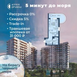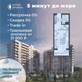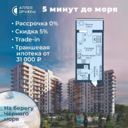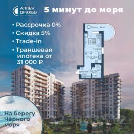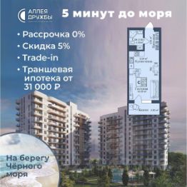 ЗВОНИТЕ ПРЯМО СЕЙЧАС, ЧТОБЫ ПОЛУЧИТЬ ВЫГОДУ ДО 650 000 руб!Скидка 5% при условии 100% оплаты либо ипотека.АКЦИИ:* Ипотека от 14,7%* ТРАНШЕВАЯ ИПОТЕКА - ПВ от 20%, платежи от 31000 в месяц* Рассрочка 0% до 2028г. ПВ от 20%* Скидка 5%* Бронь на 30 дней* 5 мин до моря пешком, планировки от 30 кв.м.* Высота потолков 3 м , предчистовая и чистовая отделка* Ипотека от СБЕРБАНКА* Доходность инвестиций от 30% годовых. * Сдача в аренду от управляющей компании (доверительное управление) позволяет получать доход от сдачи апартаментов без вашего участия* Безопасная сделка по ФЗ-214/эскроу-счёта''Аллея Дружбы'' — это комплекс апартаментов бизнес-класса в Евпатории, расположенный в 5 минутах прогулки от золотистых пляжей Чёрного моря. Два современных 12-этажных корпуса с панорамными видами на море объединены стильным стилобатом с центральным входом и бутиковыми retail-площадями, а закрытая территория и подземный паркинг обеспечивает приватность и безопасность.АРХИТЕКТУРА И КОНСТРУКТИВНЫЕ ОСОБЕННОСТИ:•12-этажное здание в авторском архитектурном стиле•Высота потолков (от 2,9 м до 3,1 м) •Эксклюзивное решение для первых этажей (высота потолков 3,4м)•Евро планировки с террасами и гардеробными•Панорамное ламинированное остекление •Индивидуальные келлеры•Видовые лоты на море•Высокоскоростные лифты по концепции 5* отеля•Предусмотрено резервное электроснабжение•По проекту предусмотрено место для кондиционера и практическое решение для маскировки коммуникацийЛОКАЦИЯ И ОКРУЖЕНИЕ:•До центра Евпатории - 7 минут на машине •Пляж - всего 5 минут пешком •Рядом с комплексом развитая инфраструктура (рестораны, магазины, кафе, медицинские учреждения, санатории) ГОСТЕПРИИМСТВО И БЕЗУПРЕЧНЫЕ СЕРВИСЫ: •Управляющая компания премиум-класса•Консъерж-сервис 24/7•Доставки продуктов и готовой еды•Зона ресепшн оформлена в стилистике комплекса•Лобби с атмосферным кафе и зонами для чтения•Премиальное решение для мест общего пользования•Интерактивная детская комната для самых маленьких •Пункты выдачи товаров от маркетплейсов•Гостевые парковочные места•Организовано место для хранения колясок ваших малышей•Ремонт на выбор ''Комфорт-формат'' и ''Гранд-формат''БЕЗОПАСНОСТЬ И ТЕХНОЛОГИИ СПОКОЙСТВИЯ:•Закрытая территория, двор без машин•Система контроля доступа (строго по электронным пропускам)•Подземный паркинг с тремя типами машиномест •Выделенные места для велосипедов•Камеры видеонаблюдения •Круглосуточный ресепшн •Телеметрия - автоматический сбор и передача данных с приборов учета апартамента минимизирует ошибки и мошенничество•Система умного апартамента с дистанционным управлением БЛАГОУСТРОЙСТВО ТЕРРИТОРИИ: •Ландшафтный дизайн по проекту (2 334 м² озеленения) •Прогулочные аллеи и зоны отдыха для расслабления и медитации•Коворкинг-зоны с высокоскоростным Wi-Fi для бизнес-переговоров•Детские и спортивные площадки •В апарт-комплексе вас ждут мини-маркет и магазин повседневных товаров•Специальное пр