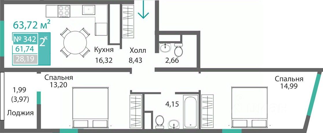 Продаётся 2-комнатная квартира в строящемся доме (Этап 4 (Секции А2, Ж2, Г4, В2, Г3)), срок сдачи: II-кв. 2028, общей площадью 61.74 кв.м., на 3 этаже. Новый жилой комплекс ''Подсолнух'' от застройщика ''Монолит'' расположен по адресу: Республика Крым, г. Симферополь, ул. Святителя Гурия