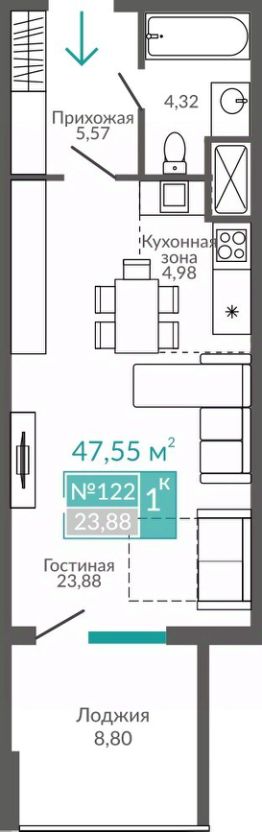 Продаётся студия-апартаменты в строящемся доме (Блок 7), срок сдачи: II-кв. 2027, общей площадью 47.55 кв.м., на 9 этаже. Расположение, транспортная доступностьЖК ''Золотые пески'' расположен в новом районе города Евпатории. Симферопольская улица, переходящая в одноименное шоссе, которое далее становится Евпаторийским шоссе, в направлении города Саки — это полоса между озером Сасык (с одной стороны) и Черным морем (со стороны новостройки). Евпатория известна своими пляжами, наилучшие из которых — песчаные, здесь находится природная широкая полоса песка на протяжении всей трассы.От исторического центра, набережной Евпатории (ориентир — мечеть Джума-Джами), до ЖК ''Золотые пески'' меньше 5 км. Жилой комплекс очень удобно расположен вблизи автобусных остановок и железнодорожной станции ''54-й км''. Электричка идет до ж/д вокзала Евпатории около двенадцати минут.ИнфраструктураАпартаменты ''Золотые пески'' спроектированы как мини-город: жильцы, владельцы или гости апартаментов должны быть полностью обеспечены всем для проживания и отдыха. СПА-центры, кафе и бары, спортивные залы и детские игровые комнаты будут к услугам проживающих в жилом комплексе. Теннисные корты, кинотеатр и открытые детские площадки также предусмотрены проектом.Евпатория с ее развитой инфраструктурой находится недалеко, всего в пяти километрах. В городе расположены медицинские и общеобразовательные учреждения, салоны красоты и рестораны, спортивные комплексы. Несколько километров на машине или автобусе по Симферопольскому шоссе в другую от Евпатории сторону, к городу Саки, — и к услугам жильцов аквапарк ''Банановая республика'', один из самых известных в этом районе Крыма. Грязелечебницы и озеро Мойнаки находятся в ближайшем к ЖК районе Евпатории, в частных и государственных клиниках предлагаются циклы оздоравливающих ванн и процедур. Озеро и лиман напротив — место, где живет множество птиц, в том числе и лебеди.Надежность застройщикаКрымский застройщик ''Монолит'' известен на полуострове как строительная компания, активно растущая в профессиональной сфере. В данный момент в портфеле застройщика четыре готовых дома, строится 25 домов. Застройщик на сайте проекта выкладывает актуальные фото и видео, информирует о ходе строительных работ. Сроки не выходят за пределы, указанные в документации.АрхитектураЖК ''Золотые пески'' возводится в несколько очередей, сдается в эксплуатацию посекционно. По конструкции это жилая новостройка с помещениями под коммерческий найм. Технология постройки — монолитно-каркасная, основа корпусов — железобетон. В каждой из трех секций девять этажей. Фасадная часть отделана ракушечником и штукатуркой. На крыше металлочерепица, есть террасы. Апартаменты пригодны для круглогодичного проживания благодаря собственной котельной, предусмотренной на территории жилого комплекса.В корпусе имеются 1,2,3 и 4-х комнатные апартаменты площадью от 43 до 207 квадратных метров. Планировки просторные, много остекления и света в комнатах, есть лоджии, кухни не менее чем 6 кв. м. Сдавались