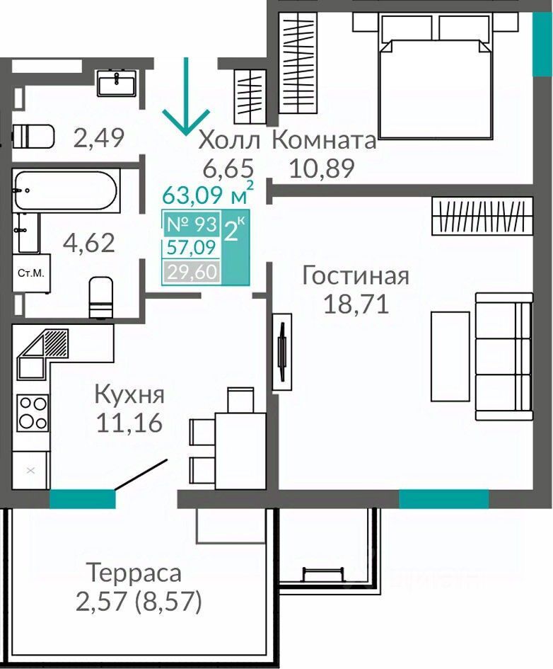 63 м² · Этаж 1 из 16