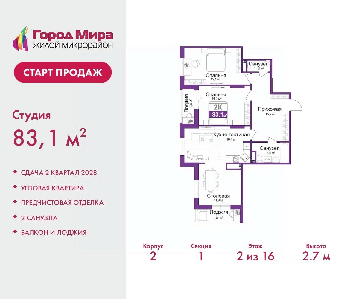 83 м² · Этаж 2 из 16