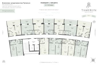 Продаётся студия-апартаменты в строящемся доме (Этап 2 (Секции 1-3)), срок сдачи: II-кв. 2029, общей площадью 35.5 кв.м., на 7 этаже. ''Tamerun'' - морская резиденция на Западном берегу Крыма, между городами Евпатория и Саки. Комплекс апартаментов ''Tamerun'' - альтернатива зарубежным курортам. В солнечной резиденции есть всё для жизни и интересного отдыха: собственный песчаный пляж и теннисный корт, бассейны с морской водой, рестораны и летнее кафе, зона СПА и фитнес-центр, общественно-деловые пространства и подземный паркинг.
