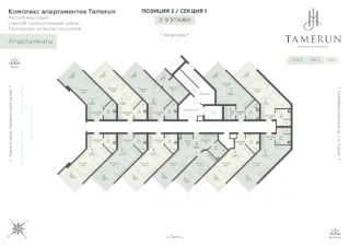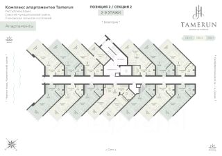 Продаётся студия-апартаменты в строящемся доме (Этап 2 (Секции 1-3)), срок сдачи: II-кв. 2029, общей площадью 37.1 кв.м., на 9 этаже. ''Tamerun'' - морская резиденция на Западном берегу Крыма, между городами Евпатория и Саки. Комплекс апартаментов ''Tamerun'' - альтернатива зарубежным курортам. В солнечной резиденции есть всё для жизни и интересного отдыха: собственный песчаный пляж и теннисный корт, бассейны с морской водой, рестораны и летнее кафе, зона СПА и фитнес-центр, общественно-деловые пространства и подземный паркинг.