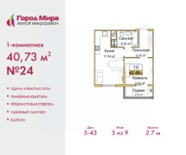 Продается 1-комн. квартира с предчистовой отделкой в ЖМ ''Город Мира'' на 5 этаже. Общая площадь: 40.73 кв.м., жилая: 9.92 кв.м., площадь просторной кухни-столовой: 17.54 кв.м. Все окна выходят на одну сторону. В квартире один балкон, один совмещенный санузел. Высота потолков 2.7 м. Квартиры в ЖК ''Город Мира'' ваш комфорт начинается здесь! ''Город Мира'' это масштабный жилой комплекс, созданный для тех, кто ценит комфорт, безопасность и гармонию с природой. Здесь продумана каждая деталь: от удобной инфраструктуры до эргономичных планировок квартир. В 2024 году микрорайон ''Город Мира'' победил в номинации ''Лучший экологический проект года в сфере строительства'' по версии премии Crimea Urban Awards. Почему выбирают наш комплекс: - Зеленый оазис живите среди природы в черте города.- Всё под рукой 2 детских сада, магазины, фитнес, медицина. - Безопасность: закрытая территория с видеонаблюдением. Наши квартиры: - Просторные планировки с кладовыми. - Автономное отопление: платите только за реальное потребление. - Готовая предчистовая отделка: стяжка пола, штукатурка стен (кроме 3, 4 домов, где нет штукатурки стен). - Консьерж-сервис и подземный паркинг. Инфраструктура комплекса: - Детские и спортивные площадки. - Зоны отдыха с беседками. - Фитнес-клубы и салоны красоты. - Будущая школа на территории, уже функционируют два детских сада. Выгодные условия покупки: - Ипотека от 5,5%, военная ипотека от 5,5%. - Рассрочка. - Материнский капитал на первоначальный взнос. Квартира находится в корпусе 5_43. Дом монолитный, одноподъездный, высотой 9 этажей. В подъезде 1 грузовой лифт. Окончание строительства - 4 квартал 2026 года. Оформление сделки по договору долевого участия. #z6sBtC