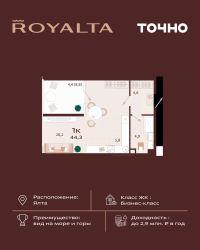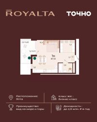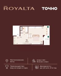 Жилой комплекс ''РОЯЛТА'' включает 5 монолитно-кирпичных девятиэтажных зданий. Проект предлагает квартиры различных планировок: от однокомнатных до трехкомнатных с расширенными балконами и террасами до 13,4 м2. Территория будет благоустроена детскими игровыми и спортивными площадками, гостевой автостоянкой и озеленением, включая газоны, деревья и кустарники. Также появятся современные уличные тренажёры, СПА-комплекс и панорамный инфинити-бассейн. В шаговой доступности находятся центральная набережная Ялты, детские сады, школы, супермаркеты, торговые центры, Ялтинский медицинский колледж, автовокзал и Мордвиновский парк.