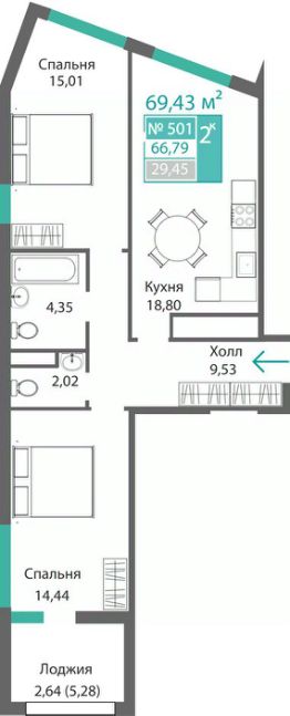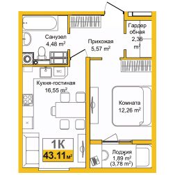 43 м2