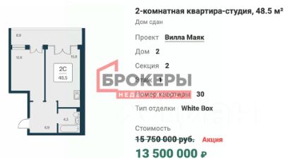 ''В продаже 2-комнатная квартира, площадью 48.5, под номером 30 в новом Доме ЖК ''Вилла Маяк''.'' ''Вилла Маяк'' - новый жилой комплекс комфорт-класса на территории Большой Ялты, в г. Алупка расположен между двух захватывающих видов на бескрайнее Черное море и горный ландшафт вершины Ай-Петри. В непосредственной близости находится Воронцовский дворец с прилегающей парковой территорией 30 га с крымскими растениями: соснами, бамбуком и ливанским кедром. Сочетание вечнозеленой растительности и целебного морского климата делают проживание и отдых приятным и полезным.Комплекс, состоит из трех малоэтажных домов, паркинга и благоустроенной территории с ландшафтным дизайном. Стильные дома, безопасный двор, великолепные виды на Воронцовский парк делают ''Вилла Маяк'' одним из самых привлекательных объектов для жизни и инвестиций.