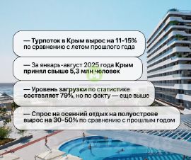 Готовый апартамент в SkySoul Resort (от собственника)— лучший комплекс Коктебеля на 1-й линии моря! 42 м², 10 этаж — высоко, светло, видно море ДВА балкона — удобная планировка White box — делай ремонт под себя или закажи у застройщика 30 метров до собственного пляжа Дом сдан, ключи естьВся инфраструктура: бассейны, SPA, рестораны, паркинг, охрана 24/7. Сдавай через УК и получай доход.Цена ниже застройщика. Торг реальному покупателю.