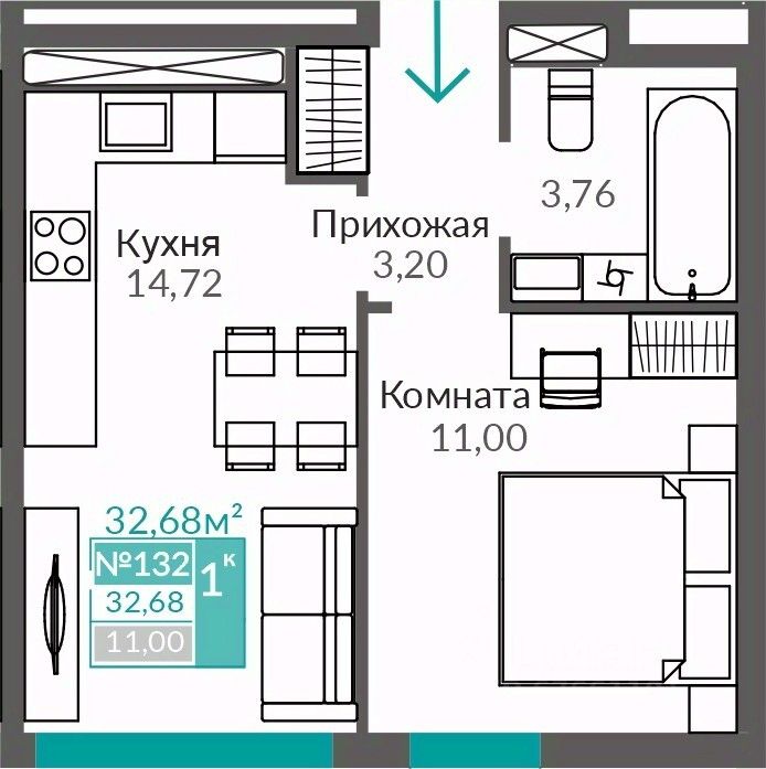 32 м² · Этаж 6 из 9