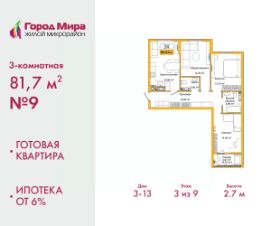 Готовые квартиры. Ипотека от 6%. Звоните, наши менеджеры вам все расскажут! 2-комн. квартира с предчистовой отделкой в ЖМ ''Город Мира'' на 7 этаже. Общая площадь: 59.7 кв.м., жилая: 21.77 кв.м., площадь просторной кухни-столовой: 19.71 кв.м. Комнаты изолированные, все окна выходят на одну сторону. В квартире один балкон, два совмещенных санузла. Высота потолков 2.7 м. Жилой комплекс ''Город Мира'' комфорт и гармония в современном формате. ''Город Мира'' это масштабный жилой комплекс, созданный для тех, кто ценит комфорт, безопасность и гармонию с природой. Здесь продумана каждая деталь от удобной инфраструктуры до эргономичных планировок квартир. В 2024 году микрорайон ''Город Мира'' победил в номинации ''Лучший экологический проект года в сфере строительства'' по версии премии Crimea Urban Awards. Ключевые преимущества комплекса:- удачное расположение зеленый район с благоприятным микроклиматом- продуманное зонирование жилые кварталы, зоны отдыха и коммерческие объекты- комфорт-класс высокое качество строительства и современные инженерные решения Инфраструктура ''Города Мира'': Образование и досуг:- 2 детских сада (по 260 мест каждый)- планируется строительство общеобразовательной школы- детские и спортивные площадки в каждом дворе- беседки для отдыха, зоны для выгула собак Ритейл и сервис:- магазины, аптеки, медицинские центры- фитнес-клубы, салоны красоты- детские развивающие центры Парковки:- гостевые парковки- наземные и подземные паркинги Квартиры с продуманным комфортом:- просторные планировки с кладовыми и колясочными- лоджии с остеклением- автономное отопление (по 23 дому: индивидуальное отопление)- выполнена стяжка пола (по 3, 4, 20, 21, 22 домам: выполненная стяжка пола и штукатурка стен) - Консьерж-сервис для дополнительного удобства Благоустройство территории:- ландшафтный дизайн с зонами отдыха- современные детские площадки- стильные холлы с дизайнерской отделкой- система видеонаблюдения для безопасности ''Город Мира'' это место, где созданы все условия для комфортной жизни. Выбирайте качество и продуманность в каждой детали! Квартира находится в корпусе 3_17. Дом монолитный, одноподъездный, высотой 9 этажей. В подъезде 1 грузовой лифт. Строительство завершено, дом сдан в 4 квартале 2024 года. Оформление сделки по договору купли-продажи. #zM23zt