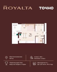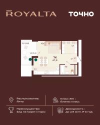 Жилой комплекс ''РОЯЛТА'' включает 5 монолитно-кирпичных девятиэтажных зданий. Проект предлагает квартиры различных планировок: от однокомнатных до трехкомнатных с расширенными балконами и террасами до 13,4 м2. Территория будет благоустроена детскими игровыми и спортивными площадками, гостевой автостоянкой и озеленением, включая газоны, деревья и кустарники. Также появятся современные уличные тренажёры, СПА-комплекс и панорамный инфинити-бассейн. В шаговой доступности находятся центральная набережная Ялты, детские сады, школы, супермаркеты, торговые центры, Ялтинский медицинский колледж, автовокзал и Мордвиновский парк.