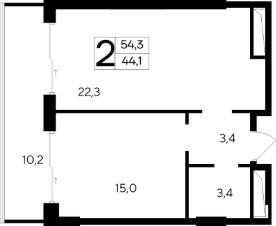 44 м2