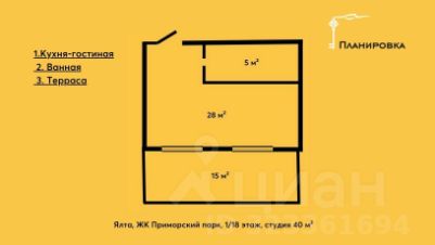 К продаже предлагается просторная студия 45 м² с террасой в элитном районе Ялты ЖК ''Приморский Park House''. Cветлая и просторная квартира площадью 45 м² находится на 12-м этаже 16-этажного дома в престижном районе ялтинского Приморского парка им. Гагарина. На просторной террасе можно обустроить зону отдыха, благодаря чему ваш отдых станет еще более комфортным. Здесь спокойно поместятся кресла и стол, сидя которым летними вечерами вы будете любоваться потрясающим закатом.Единое пространство спальни, гостиной и кухни с выходом на террасу, откуда открывается шикарный вид на горы и парк. В апартаментах выполнен современный ремонт с максимально эффективным использованием полезного пространства.Дом утопает в зелени и приятно омывается морским бризом. Здесь все создано для того, чтобы в полной мере насладиться роскошной жизнью и отдыхом. До набережной Ялты три минуты пешей прогулки.Приморский Park House органично вписывается в окружающую среду, а виды, которые открываются из квартир, действительно впечатляют. И у вас есть возможность стать владельцем одной из них. При отделке входной группы и общественных зон использовались дорогостоящие и качественные натуральные материалы: мрамор, гранит, дерево.На верхние этажи можно подняться на бесшумном скоростном лифте.Инфраструктура: -Зоны отдыха,-Детская площадка,-Охрана,-Консьерж,-Паркинг.На территории находится двор-сад с детскими площадками, прогулочными зонами, фонтаном, который органично вписывается в череду парковых аллей. В пешей доступности находятся объекты инфраструктуры премиум-класса: рестораны и кафе, SPA и фитнес-центры, медицинские клиники и салоны красоты, теннисные корты.Одно из главных достоинств этой территории состоит в том, что при строительстве комплекса застройщик сохранил уникальные вековые деревья. В сочетании с элементами ландшафтного дизайна они создают атмосферу свежести и прохлады, а уникальный целебный микроклимат парка способствует улучшению здоровья.Добавьте объявление в избранное, чтобы не потерять и следить за обновлением цены. Звоните! Мы всегда на связи.