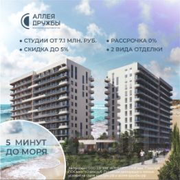 ЗВОНИТЕ ПРЯМО СЕЙЧАС, ЧТОБЫ ПОЛУЧИТЬ ВЫГОДУ ДО 650 000 руб!Цена указана со скидкой 5% при условии 100% оплаты либо ипотека.АКЦИИ:* Ипотека от 14,7%* ТРАНШЕВАЯ ИПОТЕКА - ПВ от 20%, платежи от 31000 в месяц* Рассрочка 0% до 2028г. ПВ от 20%* Скидка 5%* Бронь на 30 дней* 5 мин до моря пешком, планировки от 30 кв.м.* Высота потолков 3 м , предчистовая и чистовая отделка* Ипотека от СБЕРБАНКА* Доходность инвестиций от 30% годовых. * Сдача в аренду от управляющей компании (доверительное управление) позволяет получать доход от сдачи апартаментов без вашего участия* Безопасная сделка по ФЗ-214/эскроу-счёта''Аллея Дружбы'' — это комплекс апартаментов бизнес-класса в Евпатории, расположенный в 5 минутах прогулки от золотистых пляжей Чёрного моря. Два современных 12-этажных корпуса с панорамными видами на море объединены стильным стилобатом с центральным входом и бутиковыми retail-площадями, а закрытая территория и подземный паркинг обеспечивает приватность и безопасность.АРХИТЕКТУРА И КОНСТРУКТИВНЫЕ ОСОБЕННОСТИ:•12-этажное здание в авторском архитектурном стиле•Высота потолков (от 2,9 м до 3,1 м) •Эксклюзивное решение для первых этажей (высота потолков 3,4м)•Евро планировки с террасами и гардеробными•Панорамное ламинированное остекление •Индивидуальные келлеры•Видовые лоты на море•Высокоскоростные лифты по концепции 5* отеля•Предусмотрено резервное электроснабжение•По проекту предусмотрено место для кондиционера и практическое решение для маскировки коммуникацийЛОКАЦИЯ И ОКРУЖЕНИЕ:•До центра Евпатории - 7 минут на машине •Пляж - всего 5 минут пешком •Рядом с комплексом развитая инфраструктура (рестораны, магазины, кафе, медицинские учреждения, санатории) ГОСТЕПРИИМСТВО И БЕЗУПРЕЧНЫЕ СЕРВИСЫ: •Управляющая компания премиум-класса•Консъерж-сервис 24/7•Доставки продуктов и готовой еды•Зона ресепшн оформлена в стилистике комплекса•Лобби с атмосферным кафе и зонами для чтения•Премиальное решение для мест общего пользования•Интерактивная детская комната для самых маленьких •Пункты выдачи товаров от маркетплейсов•Гостевые парковочные места•Организовано место для хранения колясок ваших малышей•Ремонт на выбор ''Комфорт-формат'' и ''Гранд-формат''БЕЗОПАСНОСТЬ И ТЕХНОЛОГИИ СПОКОЙСТВИЯ:•Закрытая территория, двор без машин•Система контроля доступа (строго по электронным пропускам)•Подземный паркинг с тремя типами машиномест •Выделенные места для велосипедов•Камеры видеонаблюдения •Круглосуточный ресепшн •Телеметрия - автоматический сбор и передача данных с приборов учета апартамента минимизирует ошибки и мошенничество•Система умного апартамента с дистанционным управлением БЛАГОУСТРОЙСТВО ТЕРРИТОРИИ: •Ландшафтный дизайн по проекту (2 334 м² озеленения) •Прогулочные аллеи и зоны отдыха для расслабления и медитации•Коворкинг-зоны с высокоскоростным Wi-Fi для бизнес-переговоров•Детские и спортивные площадки •В апарт-комплексе вас ждут мини-маркет и магазин повседневных товаров