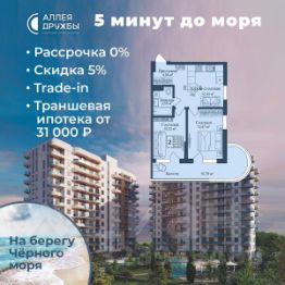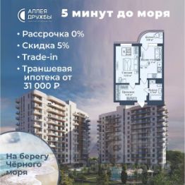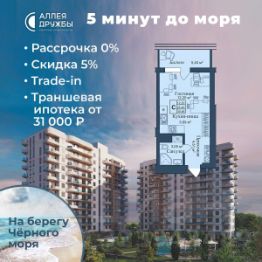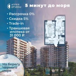 ЗВОНИТЕ ПРЯМО СЕЙЧАС, ЧТОБЫ ПОЛУЧИТЬ ВЫГОДУ ДО 650 000 руб!Скидка 5% при условии 100% оплаты либо ипотека.АКЦИИ:* Ипотека от 14,7%* ТРАНШЕВАЯ ИПОТЕКА - ПВ от 20%, платежи от 31000 в месяц* Рассрочка 0% до 2028г. ПВ от 20%* Скидка 5%* Бронь на 30 дней* 5 мин до моря пешком, планировки от 30 кв.м.* Высота потолков 3 м , предчистовая и чистовая отделка* Ипотека от СБЕРБАНКА* Доходность инвестиций от 30% годовых. * Сдача в аренду от управляющей компании (доверительное управление) позволяет получать доход от сдачи апартаментов без вашего участия* Безопасная сделка по ФЗ-214/эскроу-счёта''Аллея Дружбы'' — это комплекс апартаментов бизнес-класса в Евпатории, расположенный в 5 минутах прогулки от золотистых пляжей Чёрного моря. Два современных 12-этажных корпуса с панорамными видами на море объединены стильным стилобатом с центральным входом и бутиковыми retail-площадями, а закрытая территория и подземный паркинг обеспечивает приватность и безопасность.АРХИТЕКТУРА И КОНСТРУКТИВНЫЕ ОСОБЕННОСТИ:•12-этажное здание в авторском архитектурном стиле•Высота потолков (от 2,9 м до 3,1 м) •Эксклюзивное решение для первых этажей (высота потолков 3,4м)•Евро планировки с террасами и гардеробными•Панорамное ламинированное остекление •Индивидуальные келлеры•Видовые лоты на море•Высокоскоростные лифты по концепции 5* отеля•Предусмотрено резервное электроснабжение•По проекту предусмотрено место для кондиционера и практическое решение для маскировки коммуникацийЛОКАЦИЯ И ОКРУЖЕНИЕ:•До центра Евпатории - 7 минут на машине •Пляж - всего 5 минут пешком •Рядом с комплексом развитая инфраструктура (рестораны, магазины, кафе, медицинские учреждения, санатории) ГОСТЕПРИИМСТВО И БЕЗУПРЕЧНЫЕ СЕРВИСЫ: •Управляющая компания премиум-класса•Консъерж-сервис 24/7•Доставки продуктов и готовой еды•Зона ресепшн оформлена в стилистике комплекса•Лобби с атмосферным кафе и зонами для чтения•Премиальное решение для мест общего пользования•Интерактивная детская комната для самых маленьких •Пункты выдачи товаров от маркетплейсов•Гостевые парковочные места•Организовано место для хранения колясок ваших малышей•Ремонт на выбор ''Комфорт-формат'' и ''Гранд-формат''БЕЗОПАСНОСТЬ И ТЕХНОЛОГИИ СПОКОЙСТВИЯ:•Закрытая территория, двор без машин•Система контроля доступа (строго по электронным пропускам)•Подземный паркинг с тремя типами машиномест •Выделенные места для велосипедов•Камеры видеонаблюдения •Круглосуточный ресепшн •Телеметрия - автоматический сбор и передача данных с приборов учета апартамента минимизирует ошибки и мошенничество•Система умного апартамента с дистанционным управлением БЛАГОУСТРОЙСТВО ТЕРРИТОРИИ: •Ландшафтный дизайн по проекту (2 334 м² озеленения) •Прогулочные аллеи и зоны отдыха для расслабления и медитации•Коворкинг-зоны с высокоскоростным Wi-Fi для бизнес-переговоров•Детские и спортивные площадки •В апарт-комплексе вас ждут мини-маркет и магазин повседневных товаров•Специальное пр
