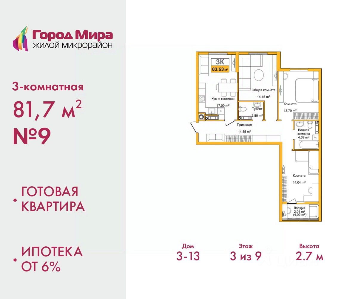 Продаётся 2-комнатная квартира в строящемся доме (Этап 16 (Секция В9)), срок сдачи: II-кв. 2027, общей площадью 55.98 кв.м., на 1 этаже. В жизни каждого наступает момент, когда мы понимаем, что выросли. Приходит время твердо идти вперед, расширять границы и открывать новые горизонты. Городской округ ''Горизонты'' - прекрасен для первого собственного жилья, идеален для выхода на новый уровень сбалансированной и легкой жизни.
